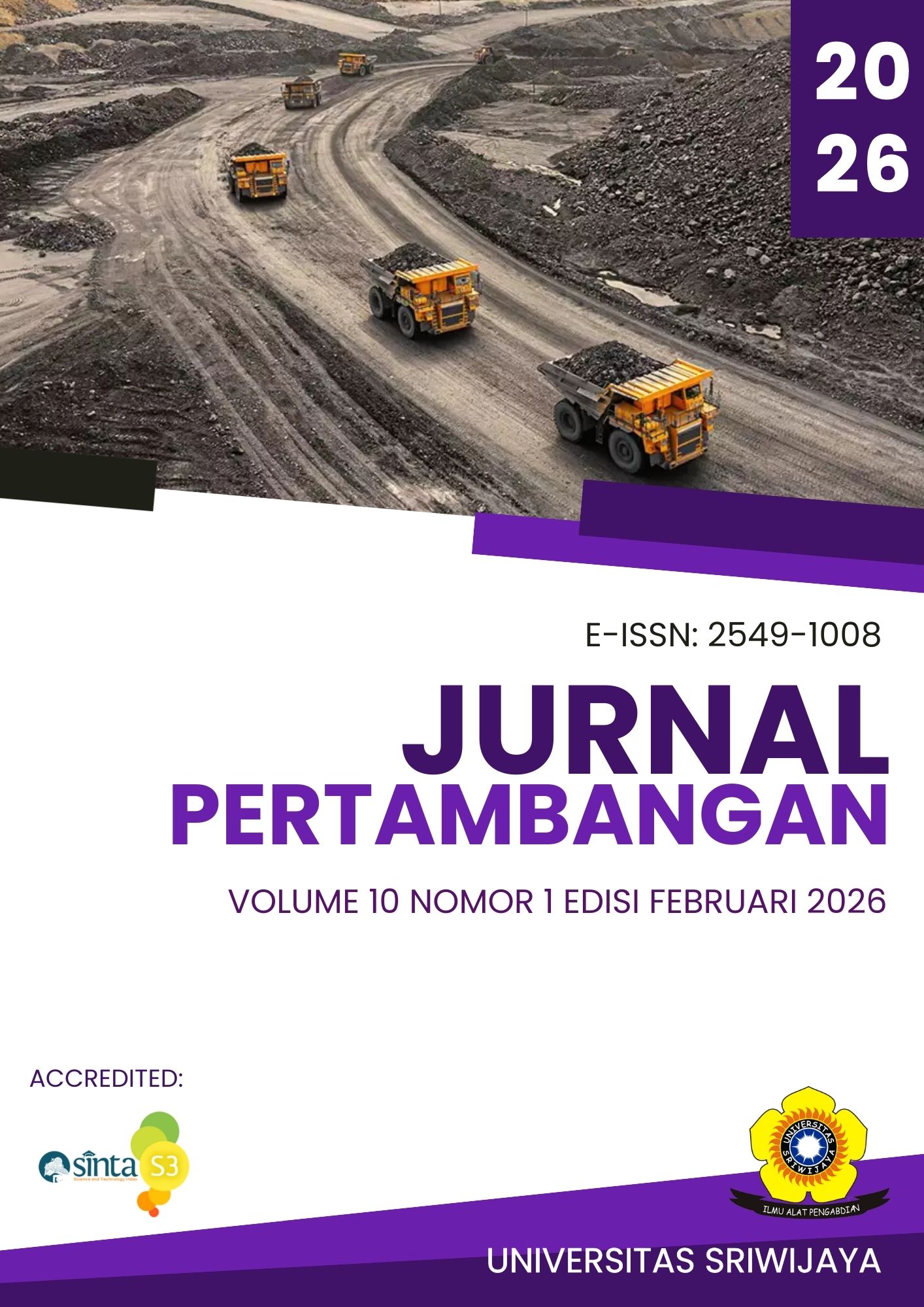 Mulai Volume 6 Nomor 1 Tahun 2022 sampai Volume 10 Nomor 2 Tahun 2026, JURNAL PERTAMBANGAN telah terakreditasi SINTA Peringkat 3.